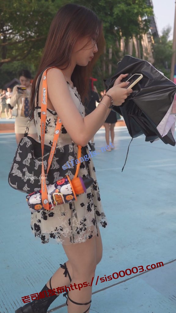 •  吊带花裙小姐姐逛街,抬腿拿东西CD蕾丝边粉内。