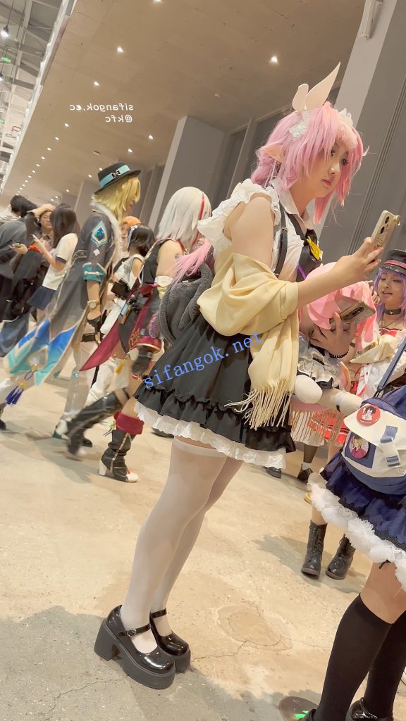 【KFC】学生妹COSER逛街拍照·过膝白丝·翘屁股露出白色内内【1V】【680M】
